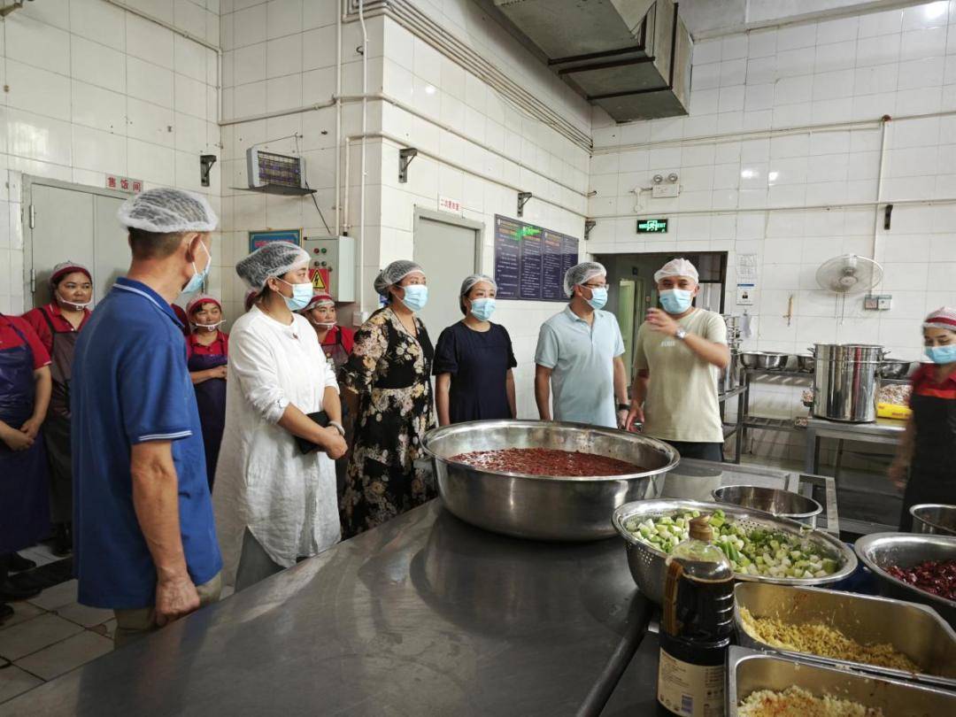 紧接着,代表们依次走访了清洗间、切配间、烹饪间、餐具消毒间、主食库及副食库等核心区域。罗老师现场演示并讲解了食材的验收标准、加工流程、餐具的高温消毒工艺以及每餐菜品的留样规范。代表们亲眼见证了后厨干净整洁的环境、严格规范的操作流程和厨师们娴熟专业的技能,纷纷对食堂科学严谨的管理和极高的卫生标准表示赞赏与认可。